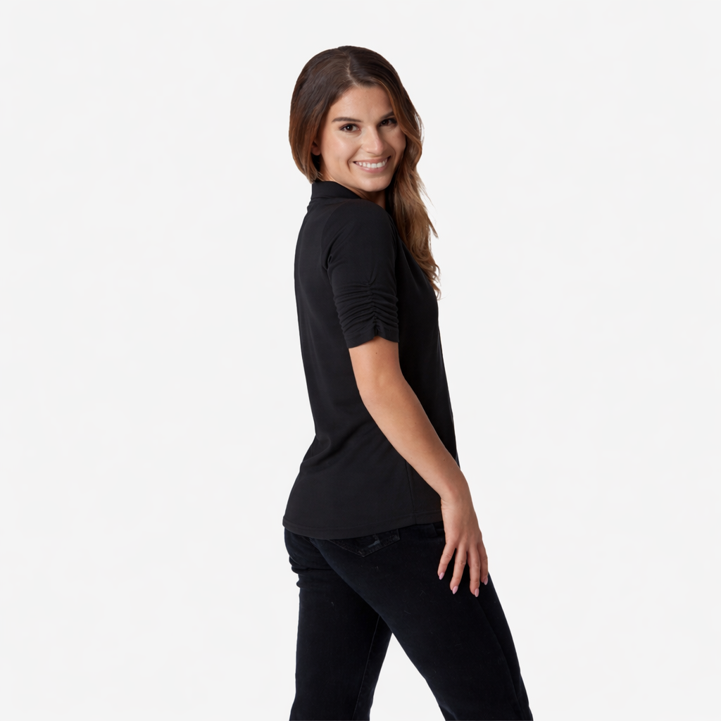 {"id":9430286368985,"title":"Ladies Ruched Sleeve Polo – Black | NEW","handle":"ladies-ruched-sleeve-polo-black-new","description":"\u003cp data-end=\"532\" data-start=\"168\"\u003e\u003cstrong data-end=\"229\" data-start=\"168\"\u003eARRIVING MID FEB\u003c\/strong\u003e\u003c\/p\u003e\n\u003cp data-end=\"532\" data-start=\"168\"\u003e\u003cstrong data-end=\"229\" data-start=\"168\"\u003eDistinctive ruched sleeve detailing sets this polo apart.\u003c\/strong\u003e\u003cbr data-end=\"232\" data-start=\"229\"\u003eDesigned to flatter and elevate. Ruche refined three-button placket polo in always flattering black brings a fresh, feminine edge to corporate wear. Cut in a contemporary fit, it is crafted from moisture-wicking 100% polyester and offers UPF 30 sun protection—delivering comfort, performance, and confidence throughout the day.\u003c\/p\u003e\n\u003cp data-end=\"894\" data-start=\"534\"\u003eA subtle honeycomb textured weave adds depth and sophistication. The polished silhouette differentiates this polo from standard corporate styles. The result is a professional look that feels current, considered, fashion forward and unmistakably CENTURY 21.\u003c\/p\u003e\n\u003cp data-end=\"894\" data-start=\"534\"\u003eBranding on the front and the back of the polo ensures maximum brand recognition.\u003c\/p\u003e\n\u003cul\u003e\n\u003cli data-end=\"894\" data-start=\"534\"\u003eC21\u003cstrong data-end=\"1389\" data-start=\"1381\"\u003e®\u003c\/strong\u003e Left Chest Embroidery\u003c\/li\u003e\n\u003cli data-end=\"894\" data-start=\"534\"\u003eCENTURY 21® Embroidery on the back of the polo underneath the collar.\u003c\/li\u003e\n\u003c\/ul\u003e","published_at":"2026-01-30T23:00:25-08:00","created_at":"2026-01-30T17:38:07-08:00","vendor":"FOSSA APPAREL 4902","type":"Polo Shirt","tags":["BLACK POLO","envision","womens polo"],"price":5600,"price_min":5600,"price_max":5600,"available":false,"price_varies":false,"compare_at_price":null,"compare_at_price_min":0,"compare_at_price_max":0,"compare_at_price_varies":false,"variants":[{"id":47749423366361,"title":"XS","option1":"XS","option2":null,"option3":null,"sku":"US7822C21","requires_shipping":true,"taxable":false,"featured_image":null,"available":false,"name":"Ladies Ruched Sleeve Polo – Black | NEW - XS","public_title":"XS","options":["XS"],"price":5600,"weight":454,"compare_at_price":null,"inventory_quantity":0,"inventory_management":"shopify","inventory_policy":"deny","barcode":null,"requires_selling_plan":false,"selling_plan_allocations":[]},{"id":47749423399129,"title":"S","option1":"S","option2":null,"option3":null,"sku":"US7823C21","requires_shipping":true,"taxable":false,"featured_image":null,"available":false,"name":"Ladies Ruched Sleeve Polo – Black | NEW - S","public_title":"S","options":["S"],"price":5600,"weight":454,"compare_at_price":null,"inventory_quantity":0,"inventory_management":"shopify","inventory_policy":"deny","barcode":null,"requires_selling_plan":false,"selling_plan_allocations":[]},{"id":47749423431897,"title":"M","option1":"M","option2":null,"option3":null,"sku":"US7828C21","requires_shipping":true,"taxable":false,"featured_image":null,"available":false,"name":"Ladies Ruched Sleeve Polo – Black | NEW - M","public_title":"M","options":["M"],"price":5600,"weight":454,"compare_at_price":null,"inventory_quantity":0,"inventory_management":"shopify","inventory_policy":"deny","barcode":null,"requires_selling_plan":false,"selling_plan_allocations":[]},{"id":47749423464665,"title":"L","option1":"L","option2":null,"option3":null,"sku":"US7829C21","requires_shipping":true,"taxable":false,"featured_image":null,"available":false,"name":"Ladies Ruched Sleeve Polo – Black | NEW - L","public_title":"L","options":["L"],"price":5600,"weight":454,"compare_at_price":null,"inventory_quantity":0,"inventory_management":"shopify","inventory_policy":"deny","barcode":null,"requires_selling_plan":false,"selling_plan_allocations":[]},{"id":47749423497433,"title":"XL","option1":"XL","option2":null,"option3":null,"sku":"US7830C21","requires_shipping":true,"taxable":false,"featured_image":null,"available":false,"name":"Ladies Ruched Sleeve Polo – Black | NEW - XL","public_title":"XL","options":["XL"],"price":5600,"weight":454,"compare_at_price":null,"inventory_quantity":0,"inventory_management":"shopify","inventory_policy":"deny","barcode":null,"requires_selling_plan":false,"selling_plan_allocations":[]},{"id":47749423530201,"title":"2XL","option1":"2XL","option2":null,"option3":null,"sku":"US7831C21","requires_shipping":true,"taxable":false,"featured_image":null,"available":false,"name":"Ladies Ruched Sleeve Polo – Black | NEW - 2XL","public_title":"2XL","options":["2XL"],"price":5600,"weight":454,"compare_at_price":null,"inventory_quantity":0,"inventory_management":"shopify","inventory_policy":"deny","barcode":null,"requires_selling_plan":false,"selling_plan_allocations":[]}],"images":["\/\/century21promoshop.com\/cdn\/shop\/files\/Untitleddesign-2026-01-31T175518.501.png?v=1769842541","\/\/century21promoshop.com\/cdn\/shop\/files\/Untitled_design_-_2026-01-31T175759.161.png?v=1769842698","\/\/century21promoshop.com\/cdn\/shop\/files\/4902-Monterey-Front-Black-Detail.jpg?v=1769842886","\/\/century21promoshop.com\/cdn\/shop\/files\/ChatGPTImageJan31_2026_05_53_49PM.png?v=1769842886","\/\/century21promoshop.com\/cdn\/shop\/files\/Untitled_design_-_2026-01-31T175940.397.png?v=1769842886"],"featured_image":"\/\/century21promoshop.com\/cdn\/shop\/files\/Untitleddesign-2026-01-31T175518.501.png?v=1769842541","options":["Size"],"media":[{"alt":null,"id":38549150826713,"position":1,"preview_image":{"aspect_ratio":1.0,"height":1000,"width":1000,"src":"\/\/century21promoshop.com\/cdn\/shop\/files\/Untitleddesign-2026-01-31T175518.501.png?v=1769842541"},"aspect_ratio":1.0,"height":1000,"media_type":"image","src":"\/\/century21promoshop.com\/cdn\/shop\/files\/Untitleddesign-2026-01-31T175518.501.png?v=1769842541","width":1000},{"alt":null,