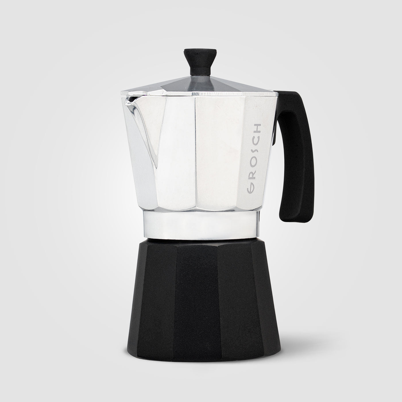 The Grosche Milano Aluminum Stovetop Espresso Maker – 6-cup is a high-quality, food-safe aluminum espresso pot designed to bring the rich flavors of traditional Italian coffee to the stovetop and campsites alike. Featuring a certified Italian lead-free safety valve and a built-in burn guard on the soft-touch handle, this stovetop espresso maker is ideal for use on gas, electric, propane, and glass stovetops (not compatible with induction). It offers a 6-cup espresso capacity, perfect for making multiple servings of favorite brew. Hand wash only for long-lasting performance. With its modern design and easy-to-use functionality, this Moka Pot is perfect for coffee enthusiasts seeking quality and style in every cup. With every Grosche product purchase, it is helping fund over 50 days of safe drinking water for those in need.