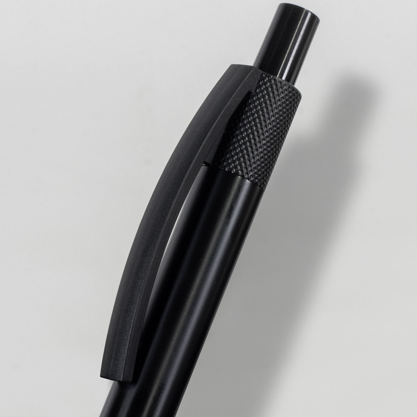This brand new Retractable aluminium ballpoint pen with a matte black anodised barrel with a textured grip, a black clip and a shiny chrome accent at the top, will do just that.
