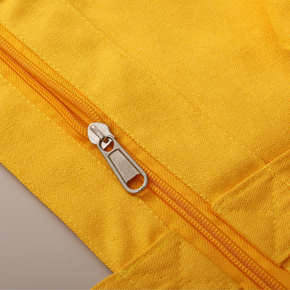 Deluxe cotton canvas bag featuring a secure zippered opening and a generous size of 46 x 35.5 x 15 cm. It also includes a handy internal pocket, perfect for keeping your keys, mobile phone and small essentials within easy reach.